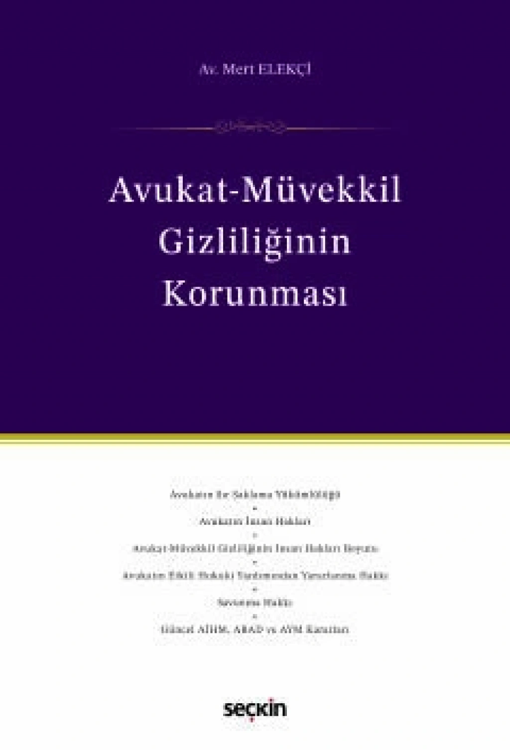 Konu; Avrupa İnsan Hakları Sözleşmesi çerçevesinde, Avrupa Birliği Hukukunu yorumlayan Avrupa Biriği Adalet Divanı kararlarından, Avrupa İnsan Hakları Mahkemesi kararlarından, Anayasa Mahkemesi kararlarından güncel örneklerle incelenmiştir. Avukat-müvekkil gizliliğinin insan hakları perspektifi konusunda yeni bir bakış açısıyla yazılmış olan bu eser, hem akademik açıdan yeni öneriler barındırmakta hem de uygulayıcılar açısından başvuru kitabı niteliğindedir.